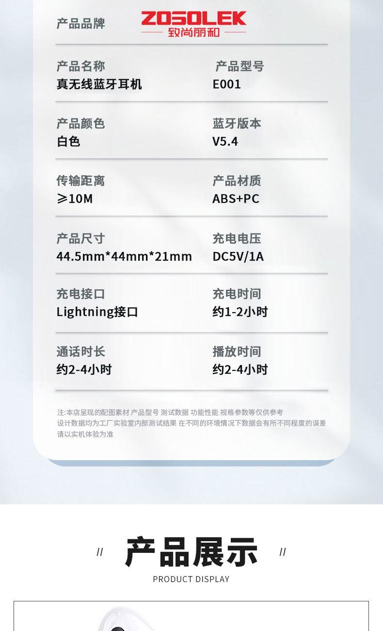 致尚丽和ZOSOLEK真无线蓝牙耳机E001