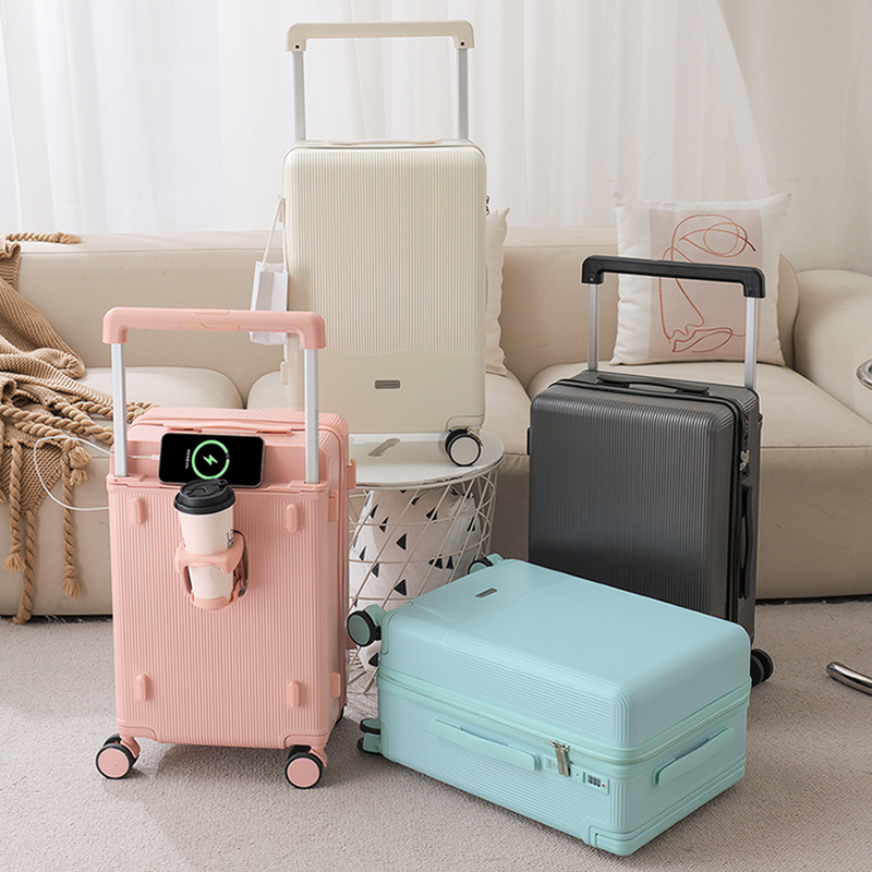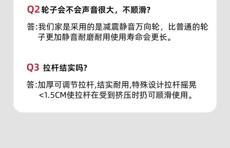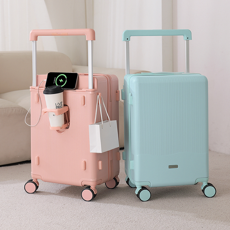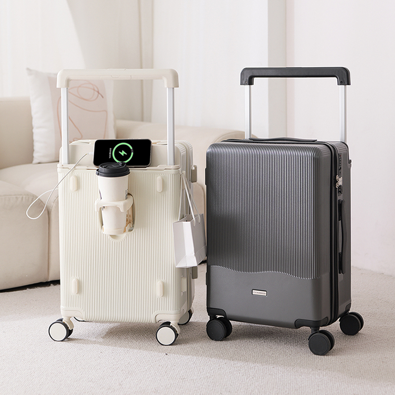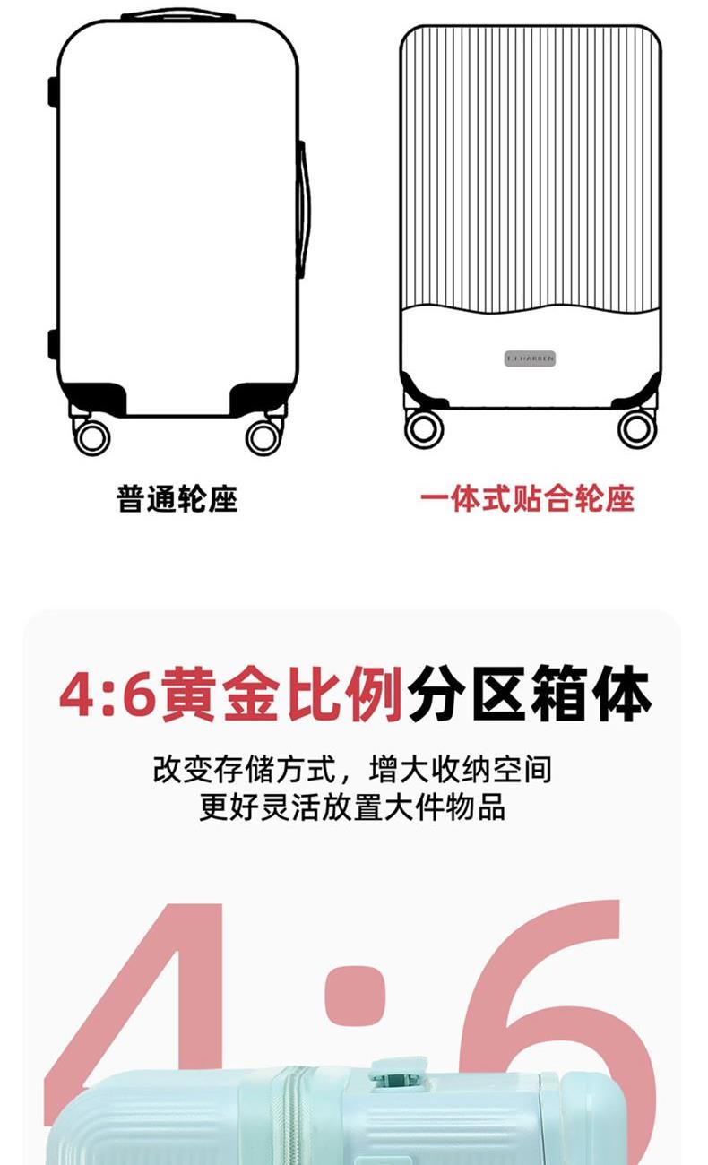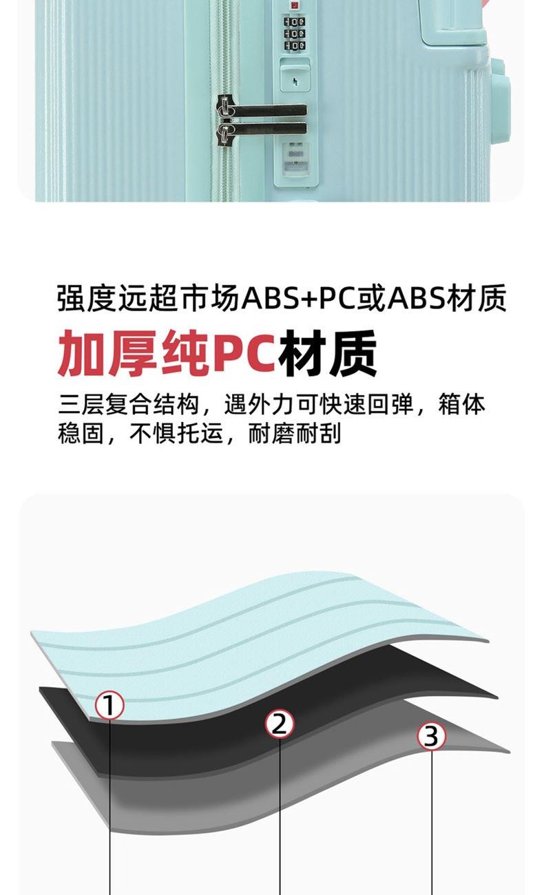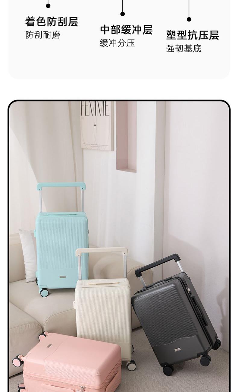 1、新款隐藏式宽体设计,配置拉满,内空间比传统拉杆箱更大更平整;2、带顶部和侧部提手,竖提横提都方便;3、侧部4个顶脚带方便行李挂架功能;4、底部带4个承重防磨顶脚,取放行李无惧剐蹭箱体;5、内里大双网结构,干湿分离,分区合理;6、带USB及Type-C充电口,同时配置移动电源内袋;7、带多功能可折叠隐藏式杯架;8、加厚PC箱体外壳,防刮坚固耐磨;9、 耐用合金拉杆,舒适手提,稳固顺滑;10、三码安全密码锁,防爆拉链,一路旅途安全放心;11、 TPE万向静音飞机轮,高承重,肆意而行。