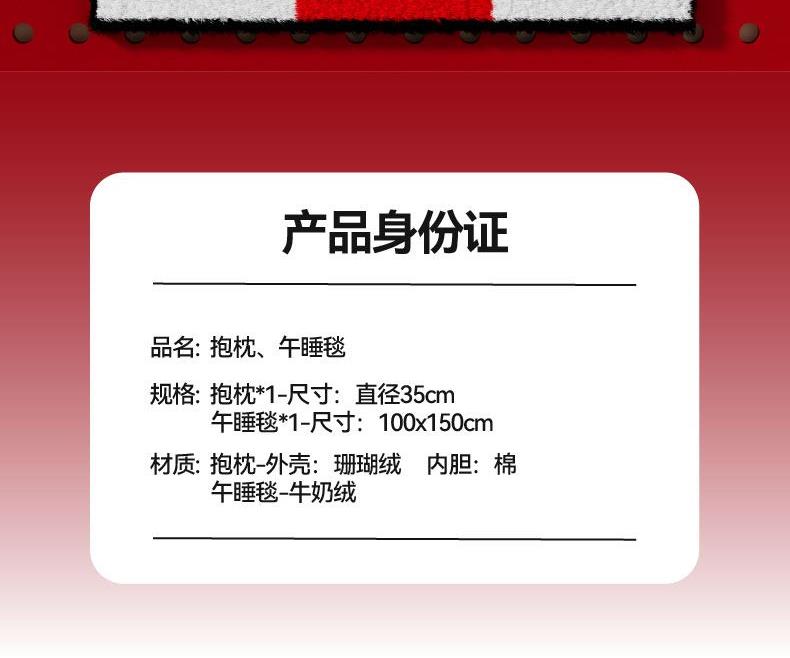 设计元素以铜钱为灵感 寓意提前暴富、风生水起 一枕多用,是抱枕也是盖毯 还能当腰靠、头枕 美观、实用、寓意兼备 午睡毯 尺寸:100x150cm 材质:牛奶绒 抱枕 尺寸:35cm直径 材质:外壳-珊瑚绒 内胆-棉 卖点:材质柔软舒适/一枕多用