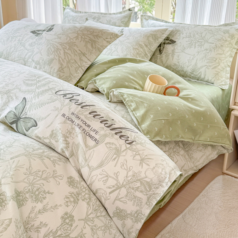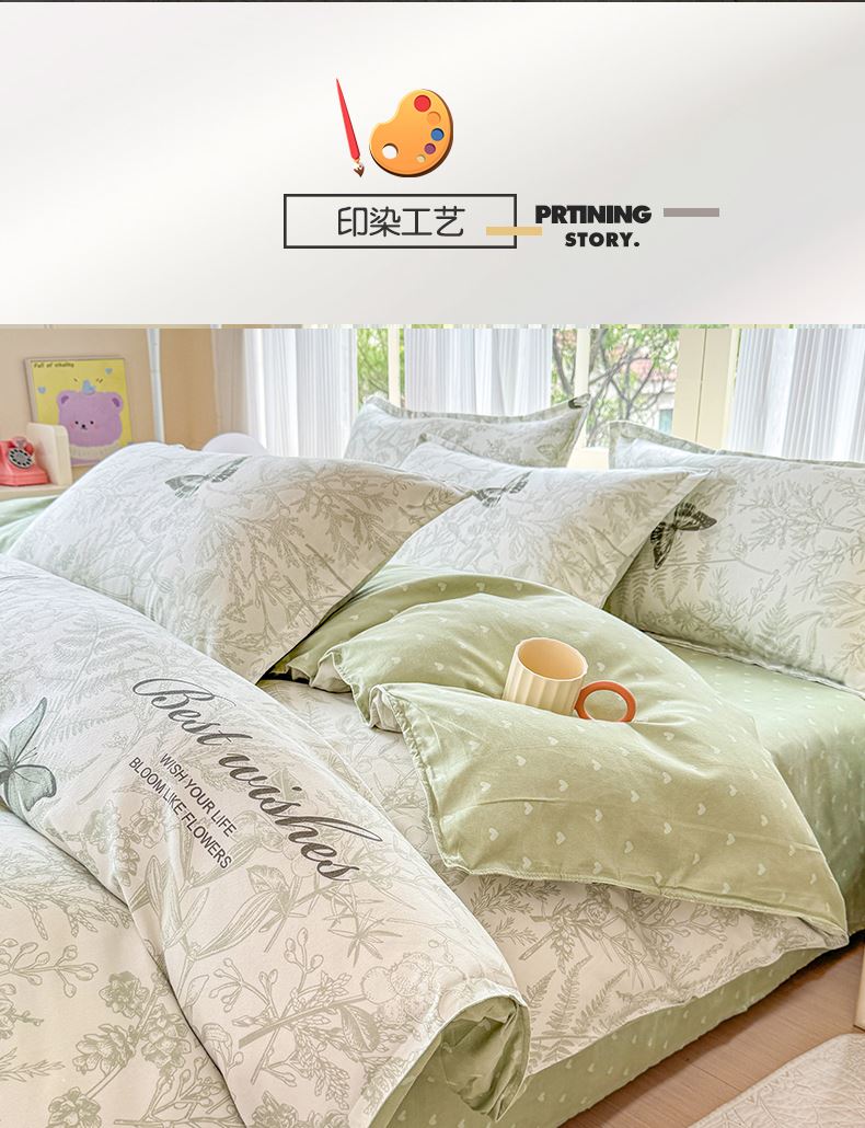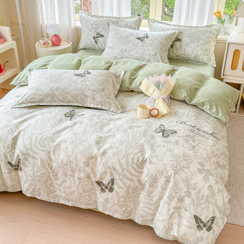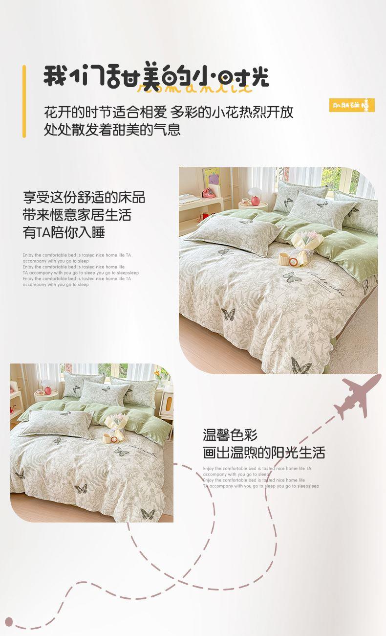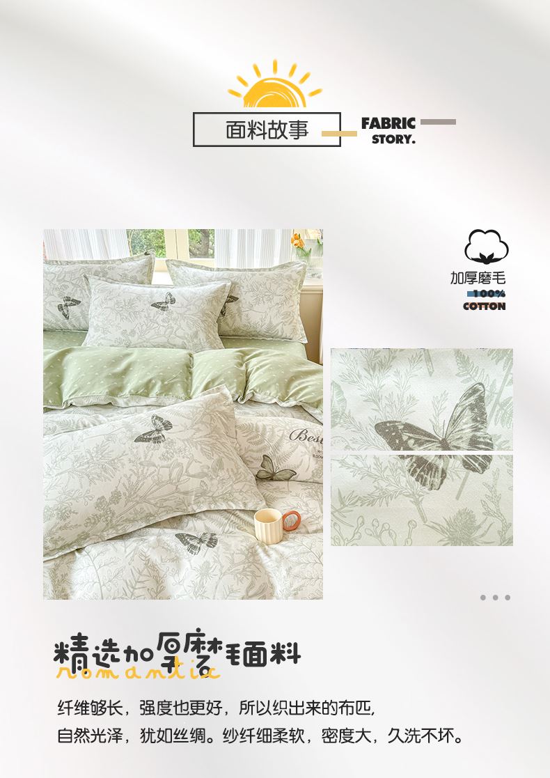 百丽安娜柔肤绒四件套-玫瑰蝶影