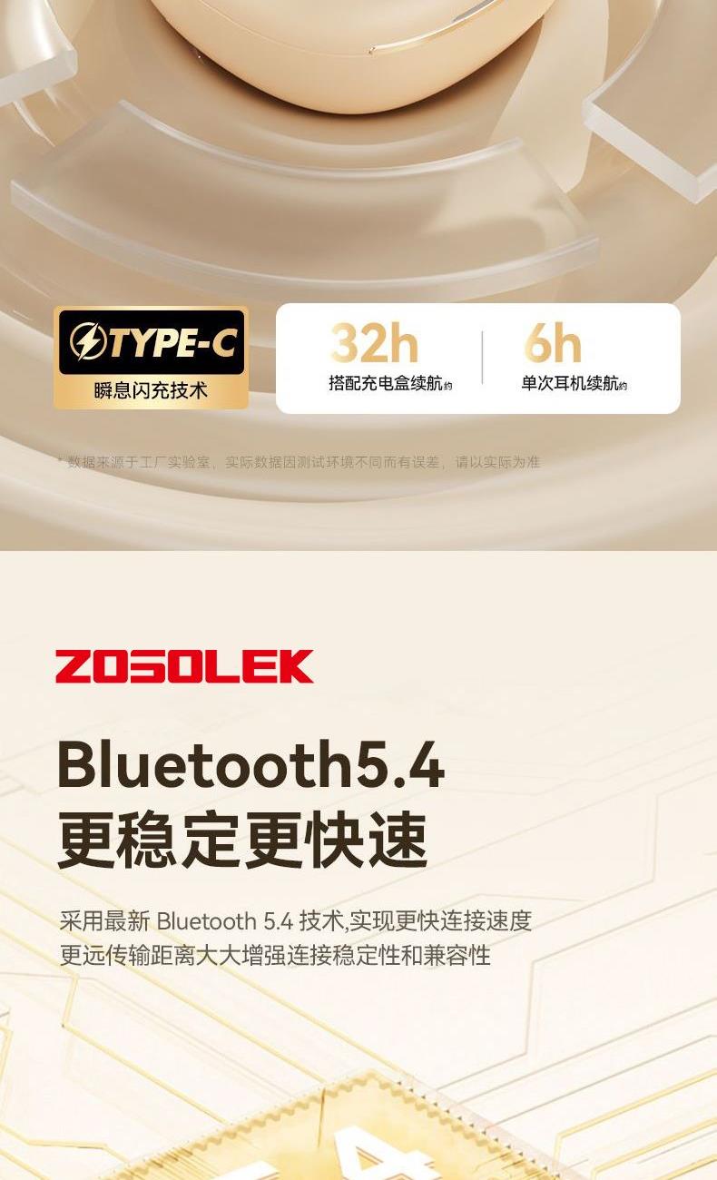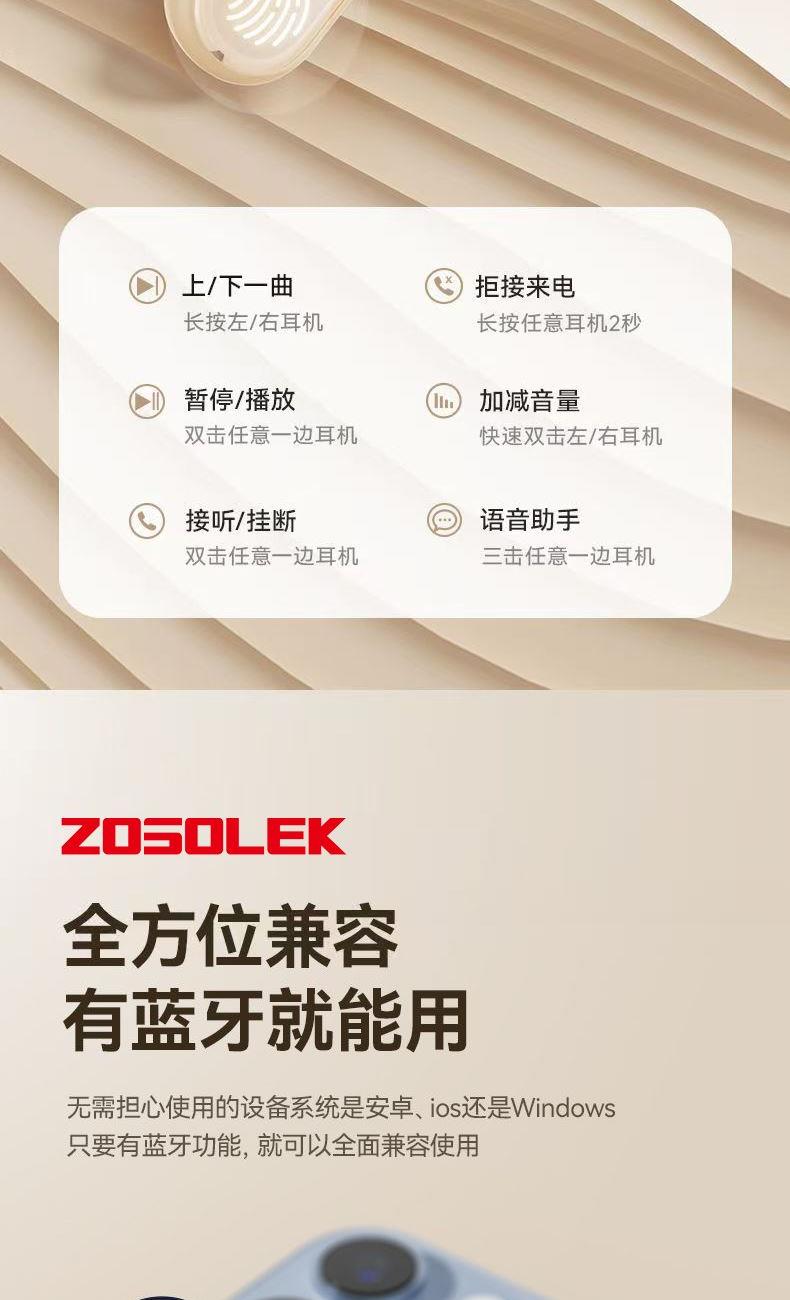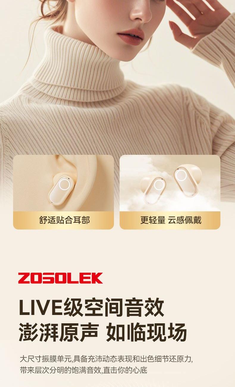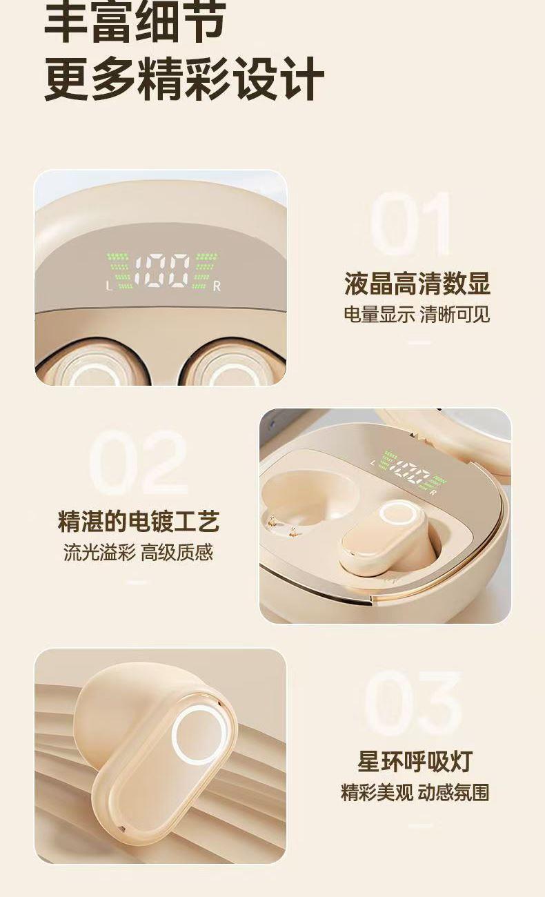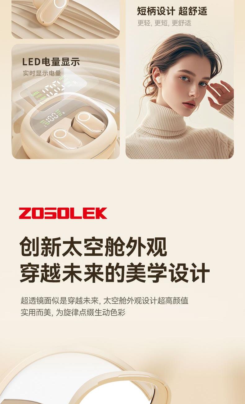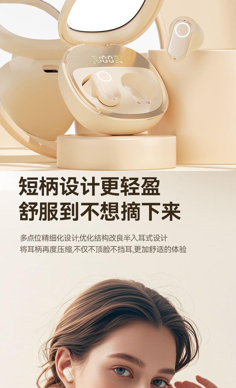 产品特点:1、轻量化短柄设计,舒适贴合耳部,云感佩戴,小巧精致,携带方便;2、德国专业调音团队,无限调试,适合每一双挑剔的耳朵;3、数显电量,一目了然,掌控电量,畅享无忧;4、性能强大的双核Bluetooth5.4芯片,超低功耗,无卡顿连接更顺畅;5、专业级ACC+SBC音频解码,无感延迟,音画同步;6、高保真单元复合振膜,宽屏音域,LIVE级澎湃饱满HIFI音效;7、AI数字消噪,ENC通话降噪,双重抗风噪,实现高清通话;8、安全高标准锂电池,搭配瞬时闪充技术,充电更快,续航更持久;9、生活防水,防水防汗,无惧风雨;10、礼盒包装,支持定制。