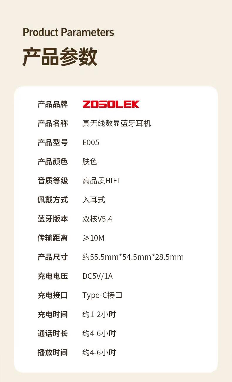 致尚丽和ZOSOLEK真无线数显蓝牙耳机E005
