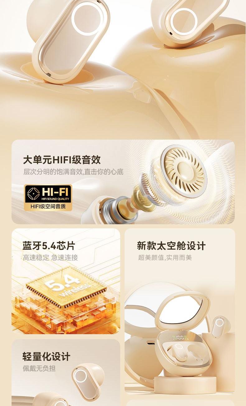 宽屏音域HIFI音效、轻量短柄、云感佩戴、 数显电量、礼盒包装