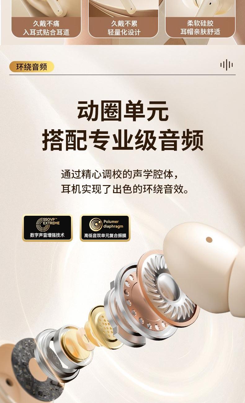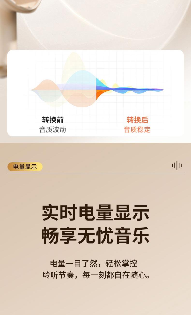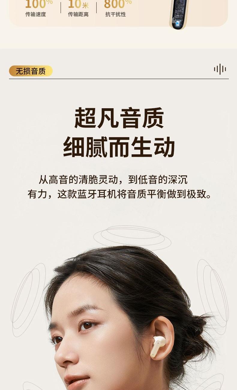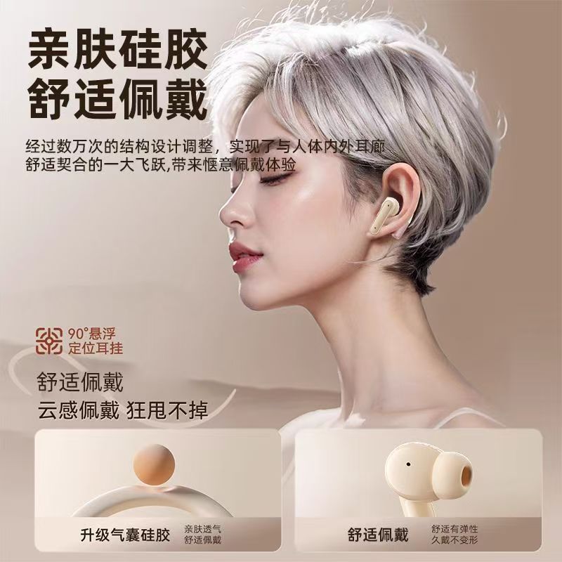 产品型号:E002 产品颜色:肤色 音质等级:高品质HIFI 佩戴方式:入耳式 蓝牙版本:V5.4 传输距离:≥10M 产品材质:ABS+PC 产品尺寸:61mm*48mm*29mm 电仓电池容量:30mAh 耳机电池容量:180mAh 充电电压:DC5V/1A 充电接口:Type-C接口 充电时间:1-2小时 待机时间:30天 通话时长:3-4小时 播放时间:3-4小时 高品质HIFI音效、精致小巧、舒适佩戴、 数显电量、礼盒包装 产品特点:1、精致小巧、携带方便,柔软亲肤硅胶耳帽,佩戴舒适;2、德国专业调音团队,无限调试,适合每一双挑剔的耳朵;3、数显电量,一目了然,掌控电量,畅享无忧;4、低功耗DSP抗干扰Bluetooth5.4芯片,连接顺畅不卡顿;5、ACC+SBC音频解码,无感延迟,音画同步;6、石墨烯振膜,减少失真,双动圈发声,无损音质,畅享中高低音HIFI音效;7、AI通话降噪技术,实现稳定的通话质量;8、安全高标准锂电池,续航更持久;9、生活防水,防水防汗,无惧风雨;10、礼盒包装,支持定制。