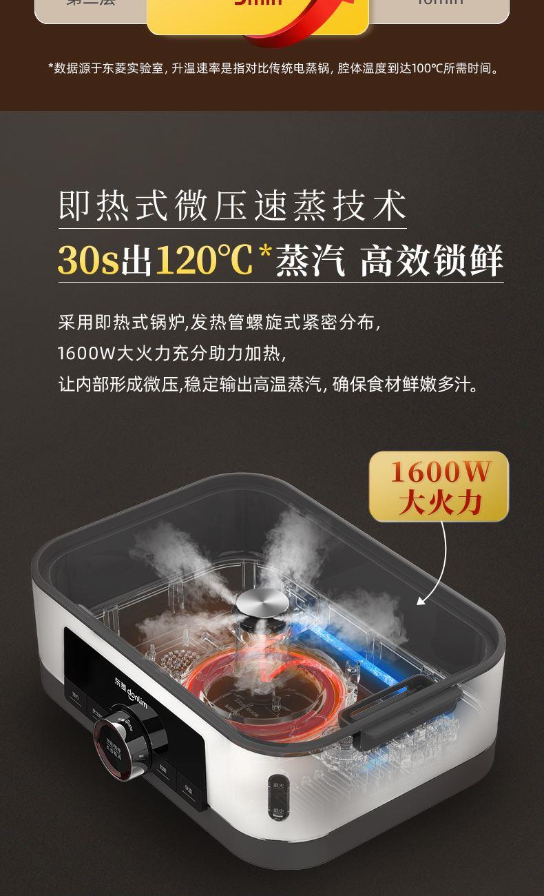 东菱可视电蒸锅DL-F1家用大容量蒸炖锅
