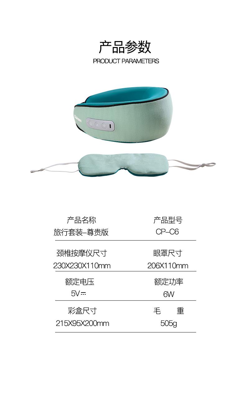 包装清单:颈椎按摩仪x1、眼罩X1、充电线x1、说明书x1