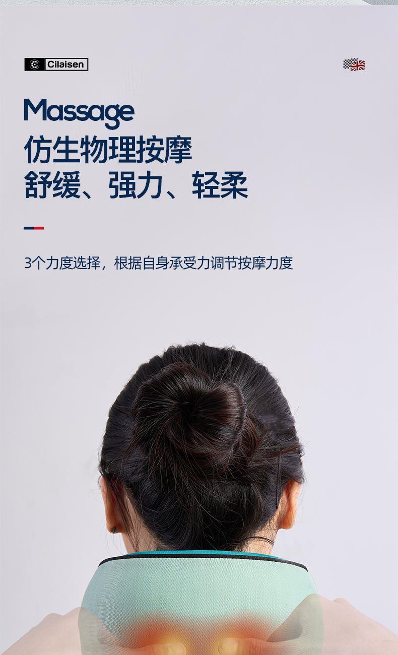 1. 3档力度调节,舒缓、强力、轻柔,多部位大面积按摩