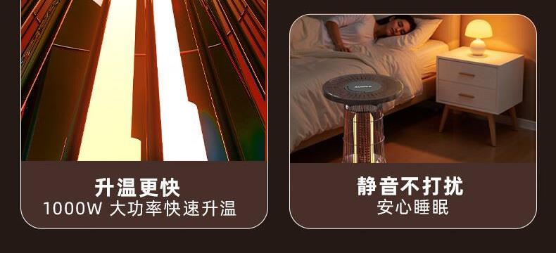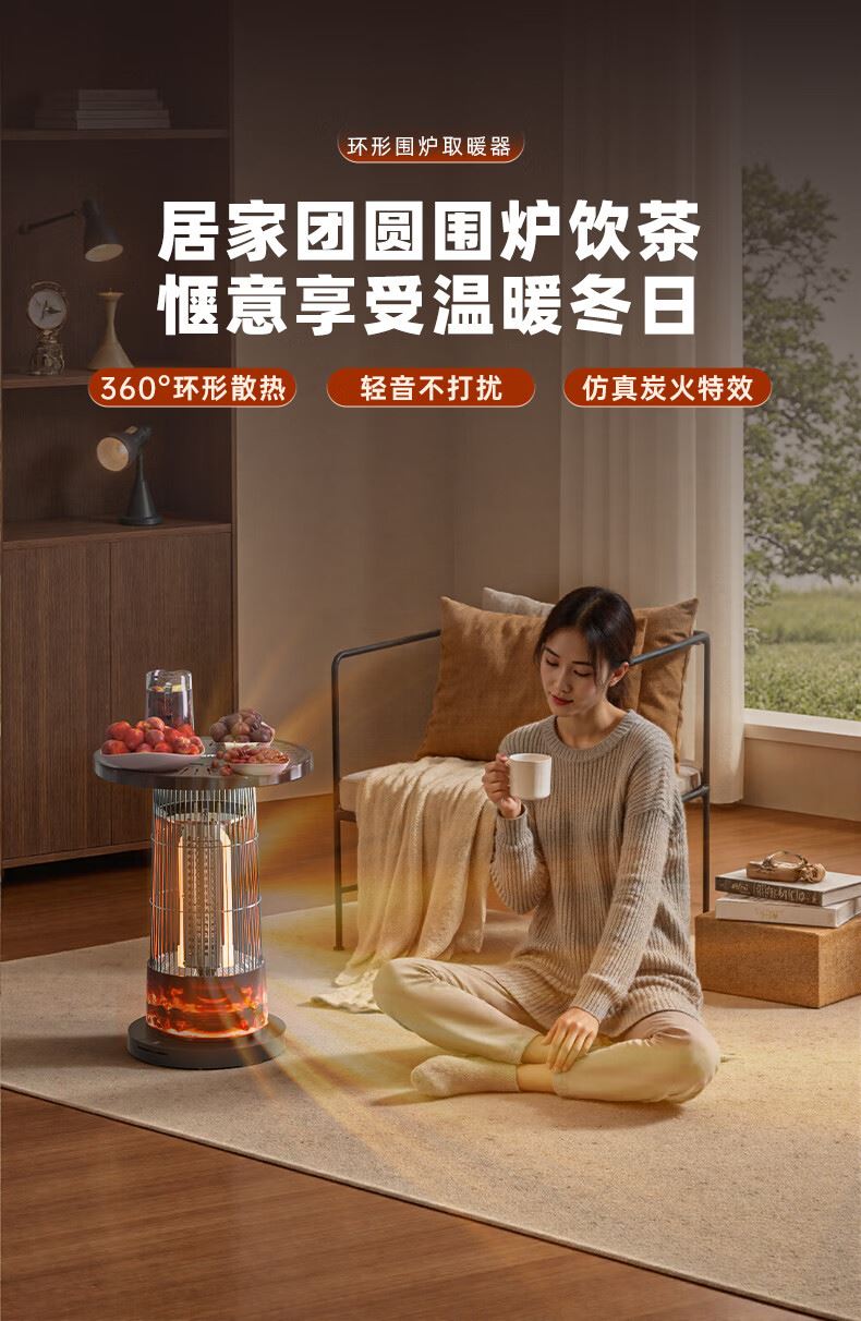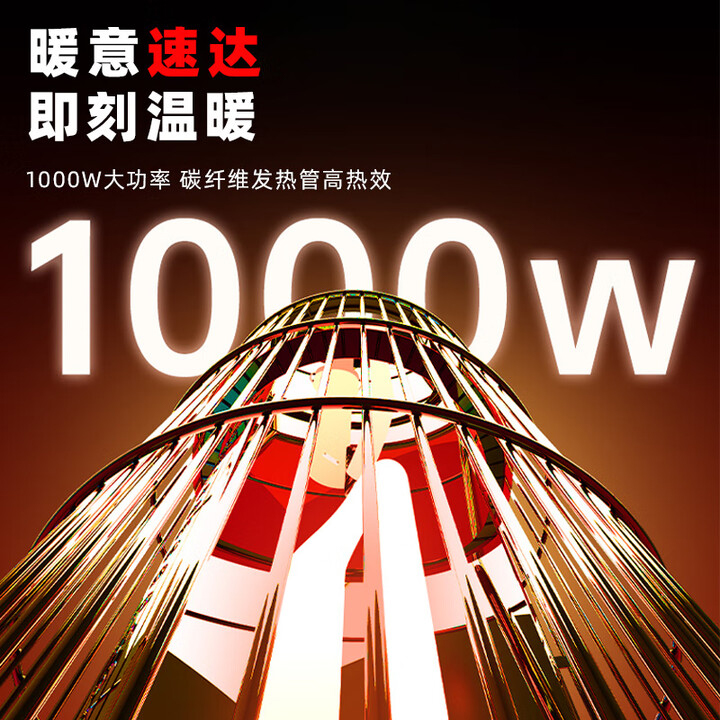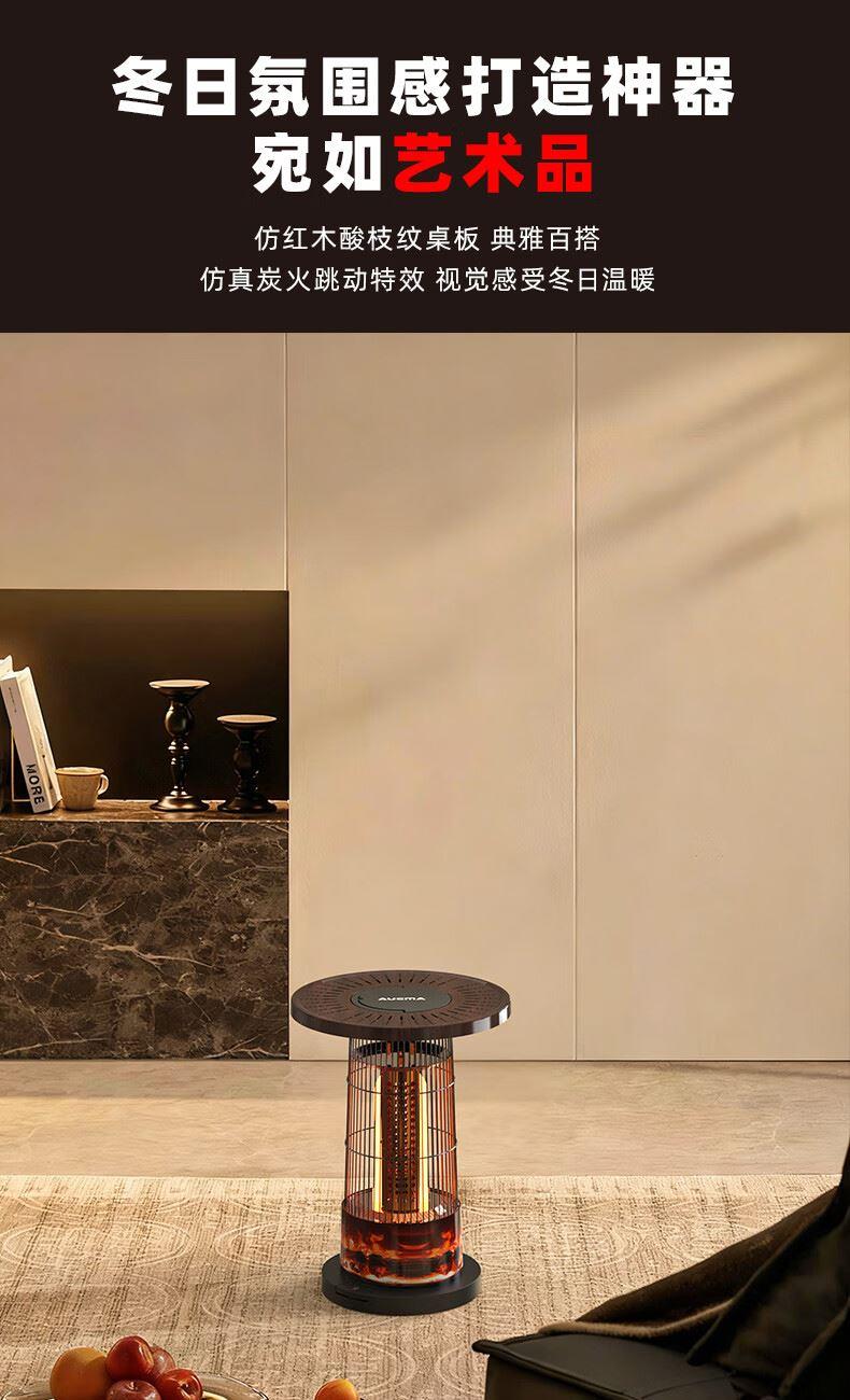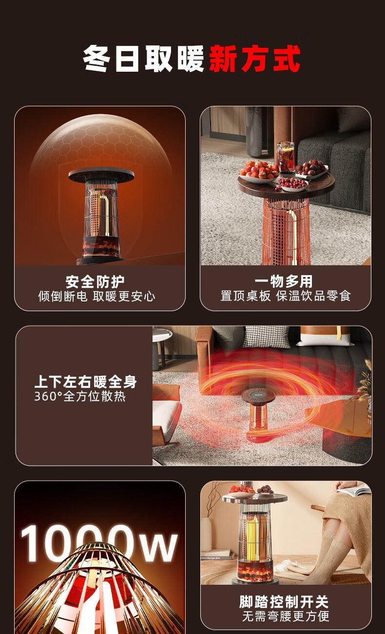 阻燃等级:V-0 倾倒断电,过热保护,外壳防烫设计 适用面积:11-15㎡ 档位:2档 加热方式:碳纤维管加热 控制方式:脚踏控制 额定功率:1000W 额定电压:220V 产品尺寸:260*260*488mm 上下左右暖全身,360度散热 脚踏控制开关,无需弯腰更方便 1000W大功率,快速升温 多重安全保护,取暖更安心 便携提手,机身小重量,随地暖意相伴 仿红木酸枝纹桌板,仿真炭火跳跃,视觉感受冬日温暖