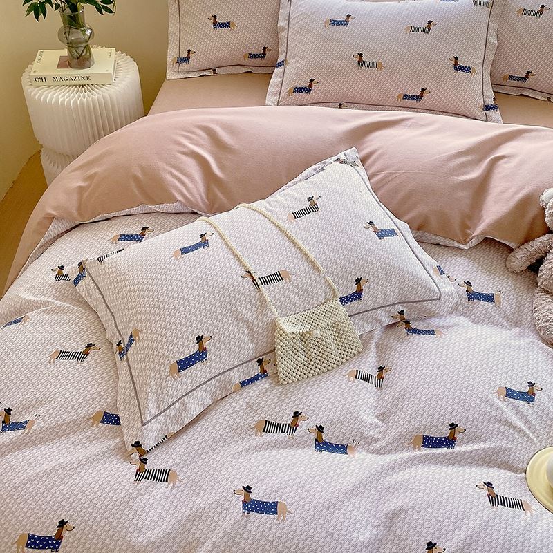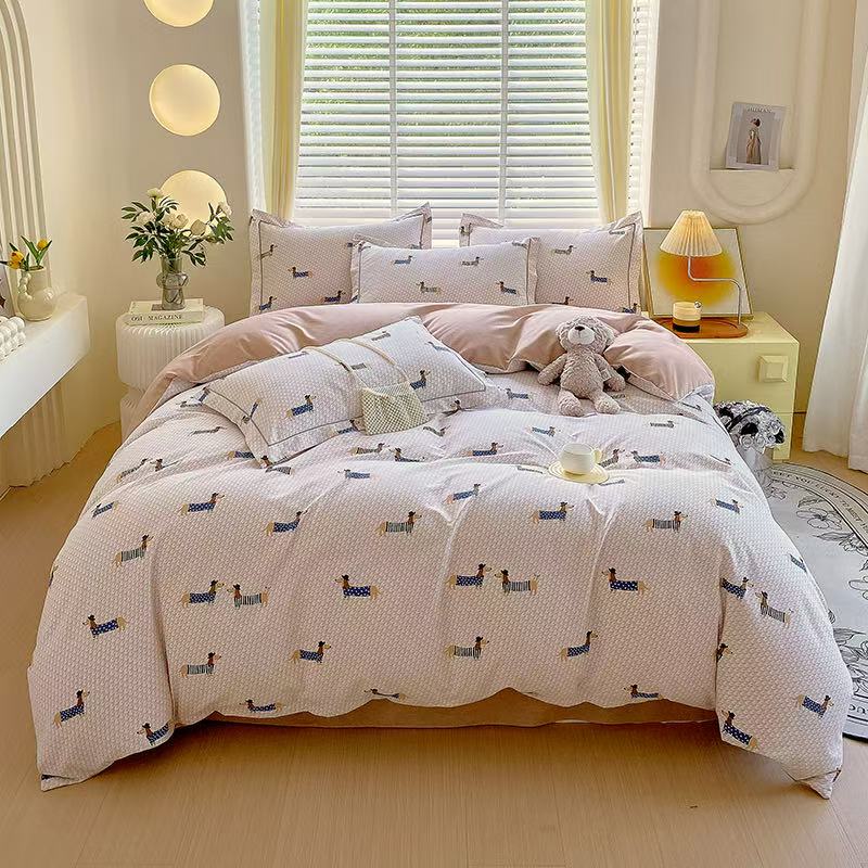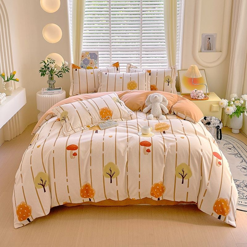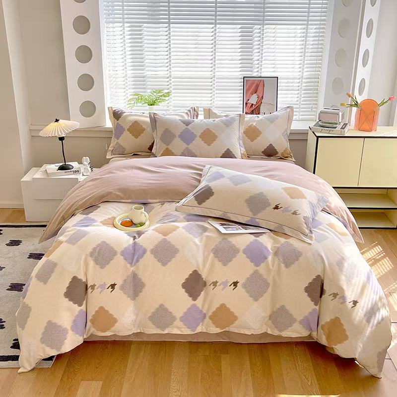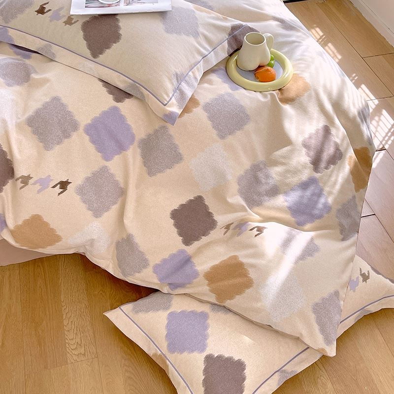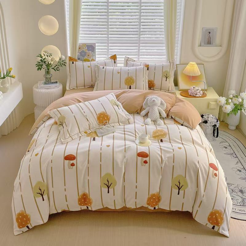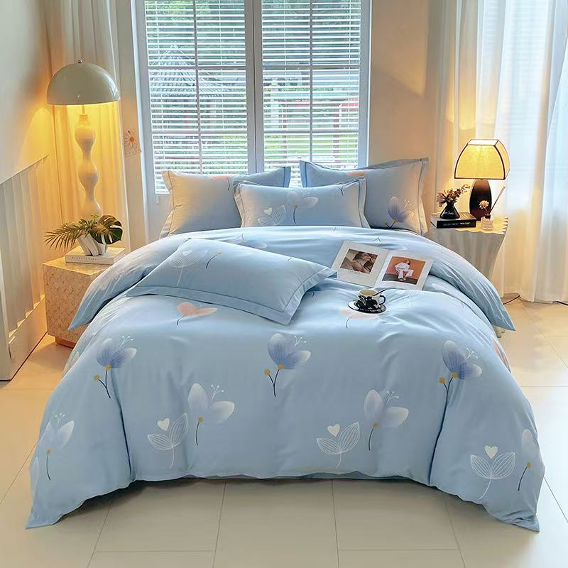 面料:75%棉+25%聚酯纤维 工艺:活性印染 规格:被套 200*230cm 床单 245*250cm 枕套 48*74cm*2 面料密度更紧密、织造的面料触感更加柔软吸湿透气性更佳。新一代印染工艺、固色度高、图案清晰不含有害物质,呵护优质睡眠。