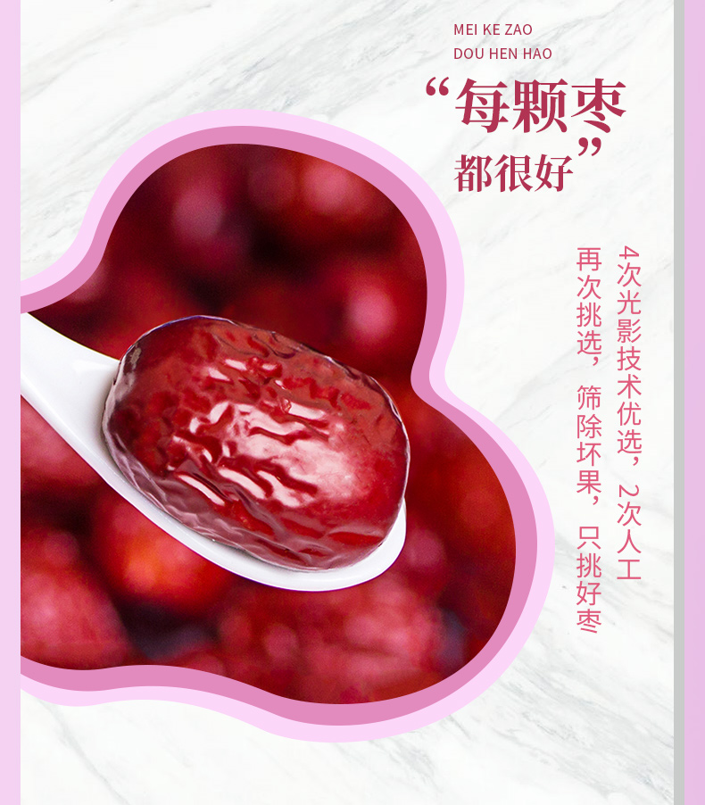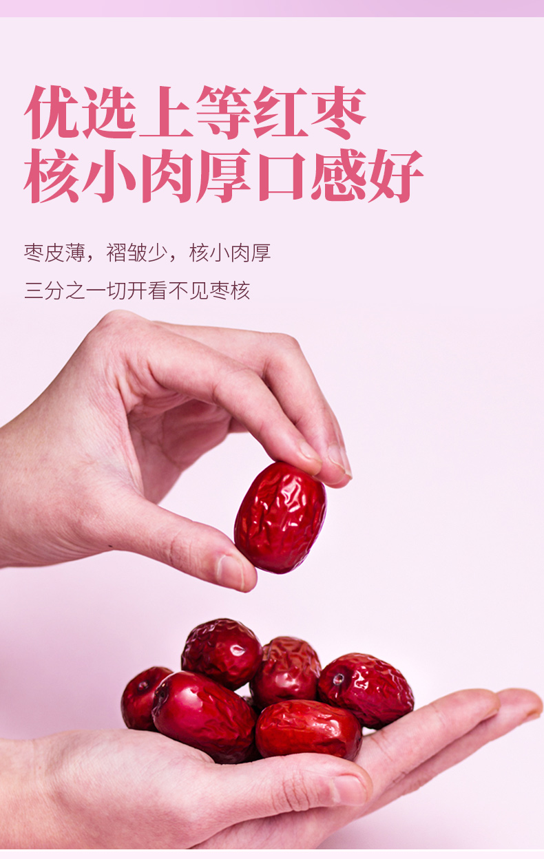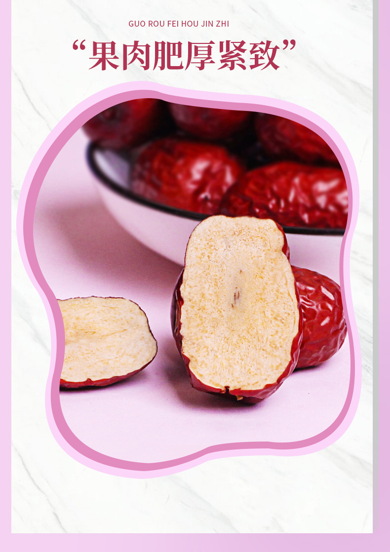 精选新疆若羌红枣,肉厚核小弹润细腻