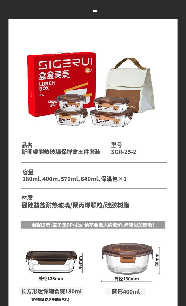 斯阁睿耐热玻璃保鲜盒五件套装SGR-25-2