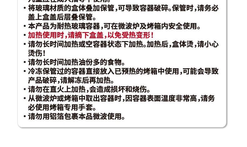 ·盒身高硼硅耐热玻璃材质,微波炉、烤箱使用OK!