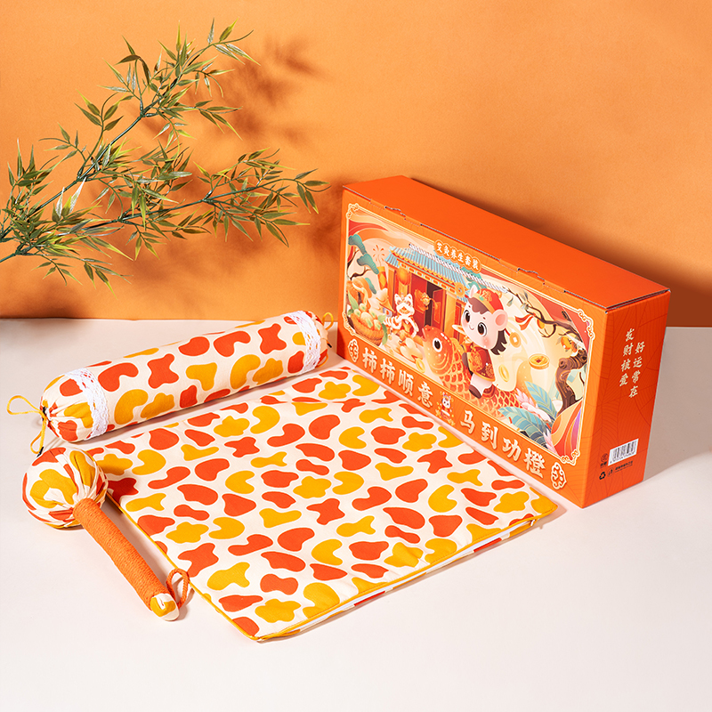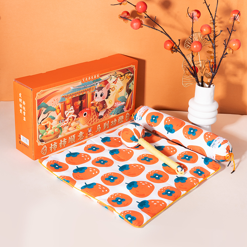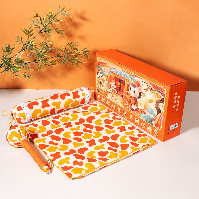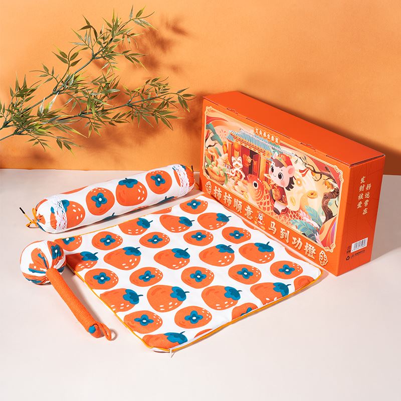 1、主题“柿柿顺意 马到功橙”,吉祥寓意满满,既与产品面料颜色图案相呼应,又体现了马年开门红元素,是新年贺岁、开门红主题产品!