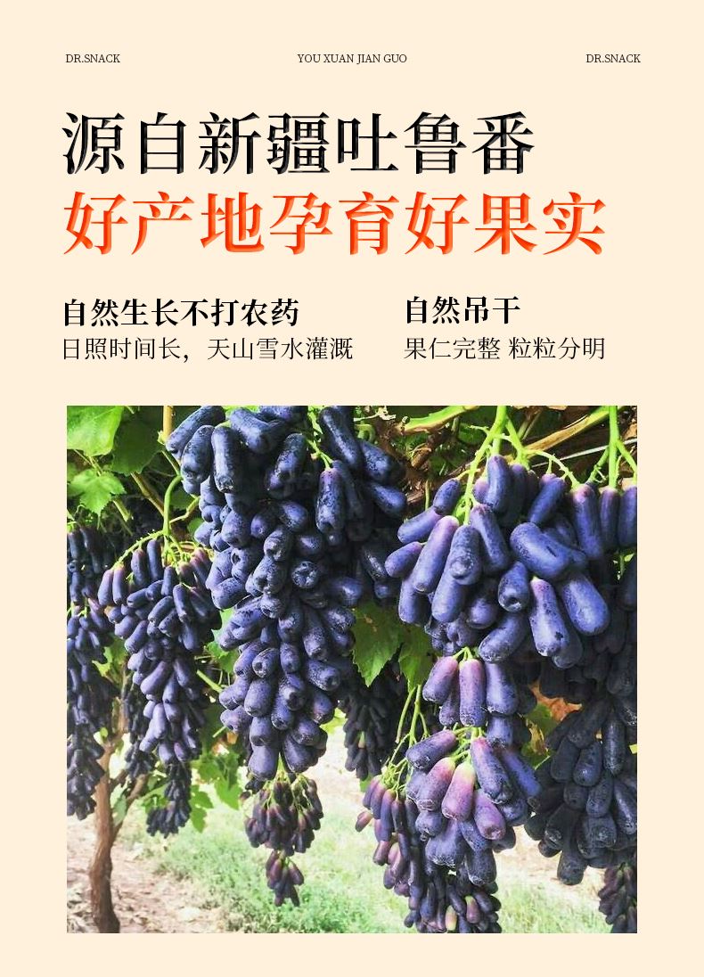 源自新疆吐鲁番,自然晾干,颗粒饱满,口感清甜,大小均匀,家庭量贩装,实惠大份量