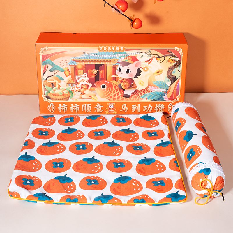 河南承夏柿柿顺意马到功橙坐垫艾枕套装 河南承夏柿柿顺意马到功橙坐垫艾枕套装