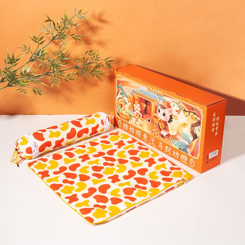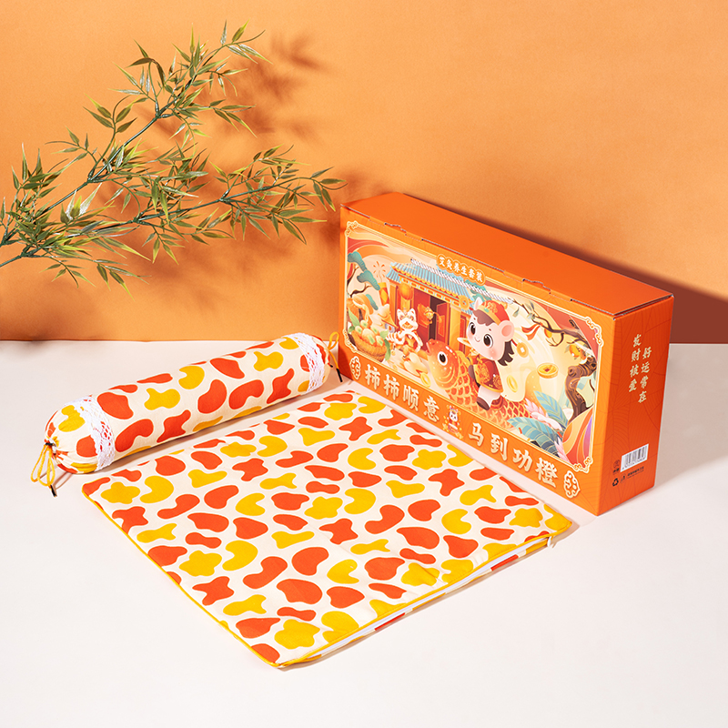 礼盒规格:460*240*100mm 产品配置:普通版艾绒坐垫40*40cm*1(含布套、艾绒垫) 艾草颈椎枕40*9cm*1 推荐理由: 1、主题“柿柿顺意 马到功橙”,吉祥寓意满满,既与产品面料颜色图案相呼应,又体现了马年开门红元素,是新年贺岁、开门红主题产品! 2、橙色系瓦楞礼盒,国潮图案,喜庆大气。 3、精选老粗布面料,亲肤耐磨,色彩艳丽,祥云片片/好柿连连双色可选,美得各有千秋。 4、艾草锤,填充多味本草,艾在手上,锤出安康;艾草颈椎枕,专注颈椎健康,缓解各种颈部不适,颈享好眠;艾绒坐垫,无火无烟艾灸,排湿除寒,疏经通络,改善亚健康;搭配使用,健康翻倍。