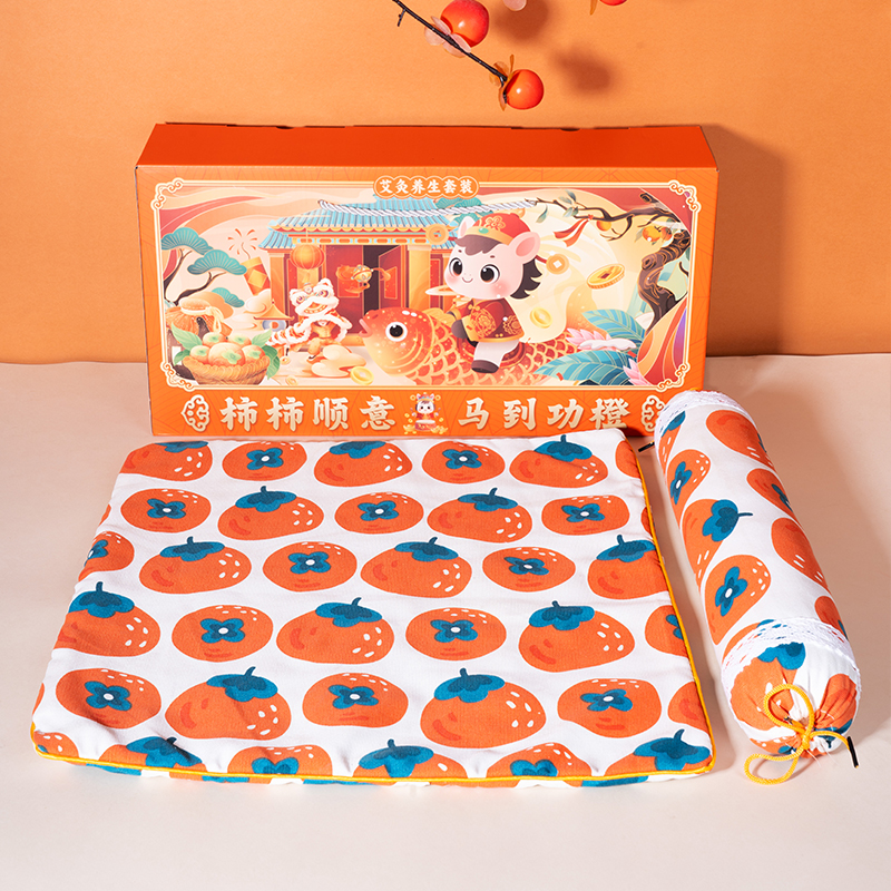 河南承夏柿柿顺意马到功橙坐垫艾枕套装 礼品已成功加入PPT!