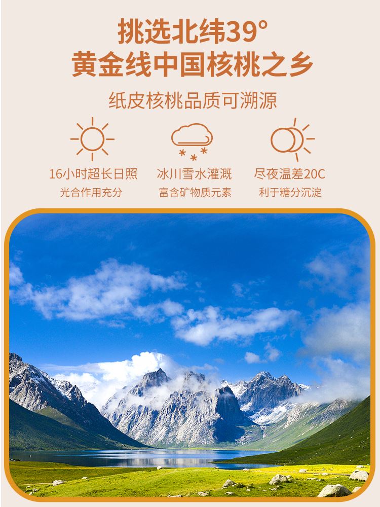 新疆185纸皮核桃,肉厚回甜不苦涩,颗粒均匀,随心搭配多种吃法,入口香甜,24小时慢烤烘焙